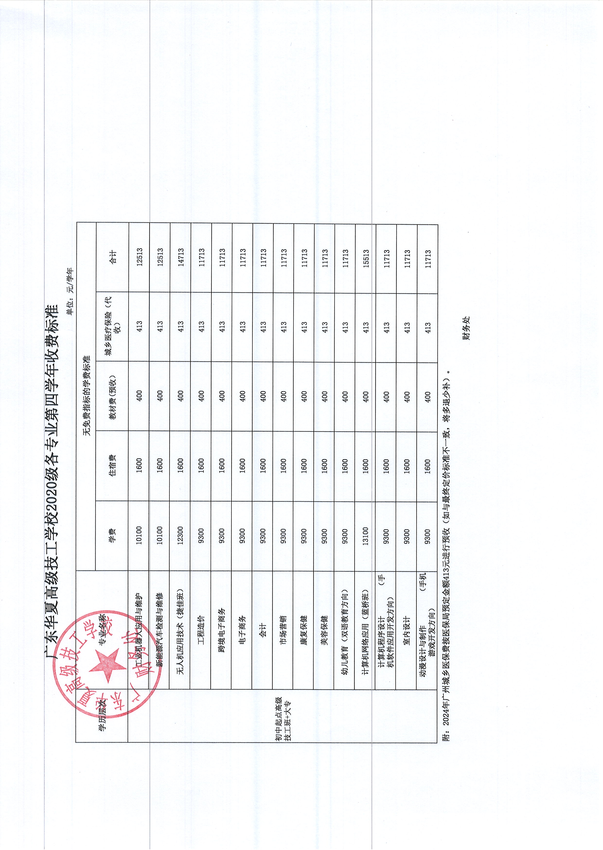 广东华夏高级技工学校收费标准公示2023年